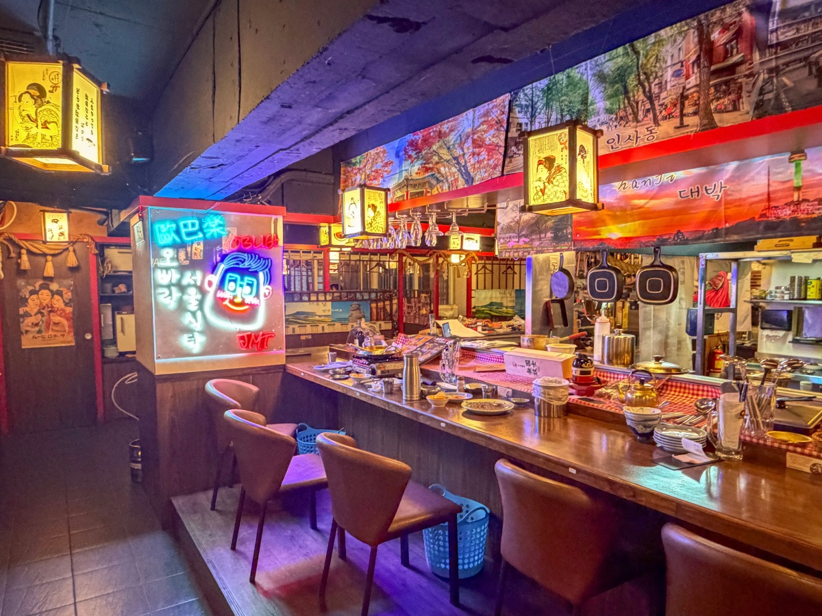 第一眼就被吧檯吸引到,微暖燈光搭配韓式元素,不會太商業,有點像在首爾路邊會遇到那種質感小店