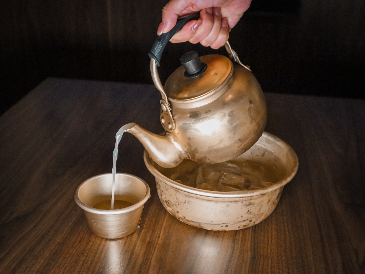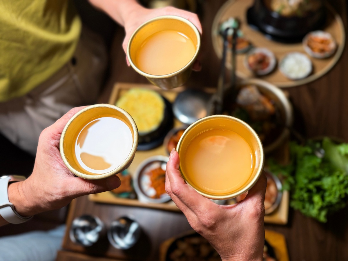 梅子香氣柔和+瑪格利的微酸感,配重口味韓式料理剛剛好,裝在金銅色茶壺裡,朋友們一起乾杯,來體驗韓劇生活
