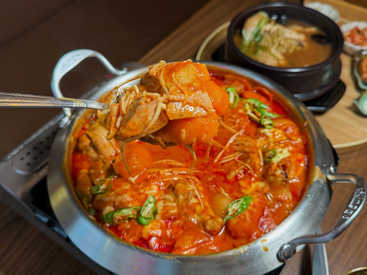 這道上桌真的會讓人先驚呼一下,份量超多!濃濃的韓式辣醬與雞肉一起燉得入味,裡面還有年糕與地瓜份量十足,越吃越過癮的那種微辣!